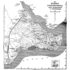 Ad ogni buon conto, le allego la mappa più seria che abbiamo, che è ancora quella della Constantinople Byzantine di Janin: è il minimo, per l'occhio di un geologo! La risoluzione è alta e zoomando può distinguere ogni nome e dettaglio.